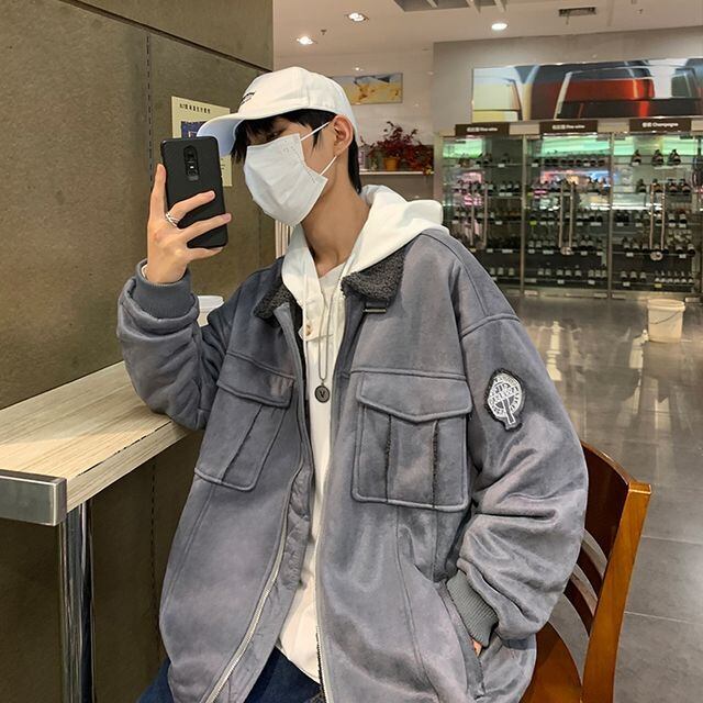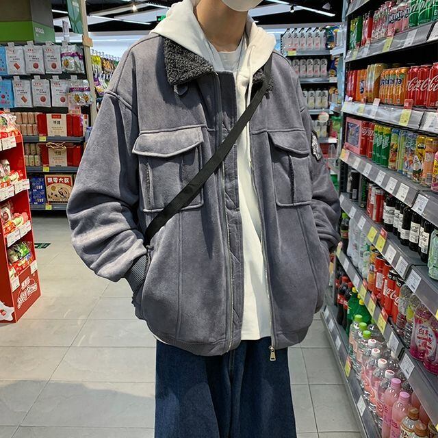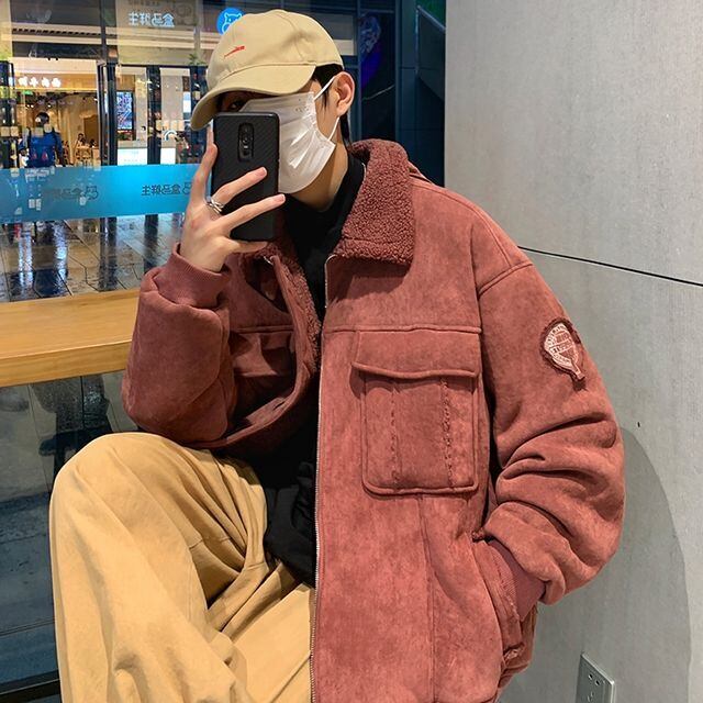 【予約販売】ブルゾン 襟ボア アウター 冬 ジャケット ショート丈 メンズ シンプル オフホワイト ワイン グレー 男前 こなれ感 お洒落 韓国 トレンド 秋 冬 M/L/XL/2XL