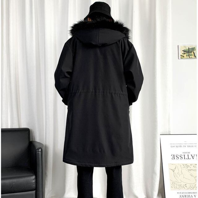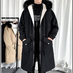【予約販売】コート ファー フード付き 無地 オーバーサイズ ミリタリー 内ボア ブラック ベージュ ミドル丈 コート ジャケット 防寒 お洒落 こなれ感 ベーシック 秋冬 大きいサイズ M/L/XL/2XL/3XL