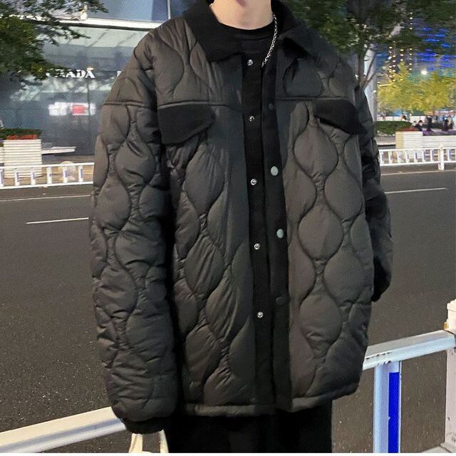 【予約販売】ブルゾン キルティング 異素材MIX アウター ブラック ホワイト 冬 ジャケット ショート丈 メンズ シンプル 男前 こなれ感 お洒落 韓国 トレンド 秋 冬 M/L/XL/2XL