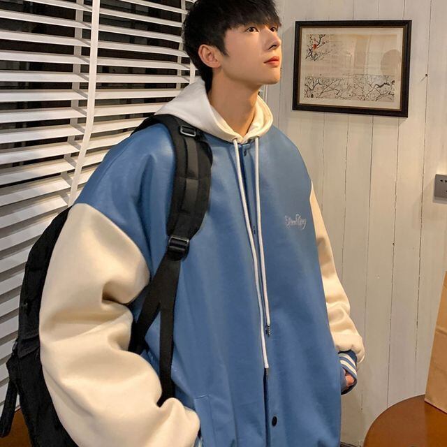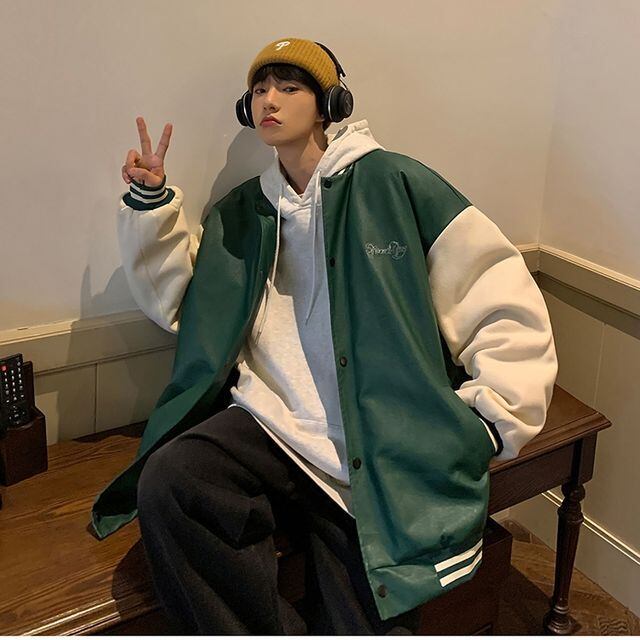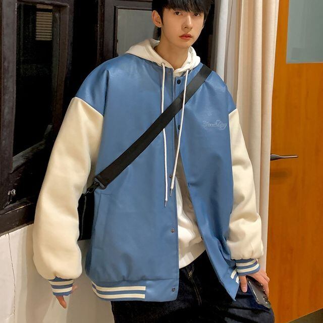【予約販売】ブルゾン スタジャン アウター ブルー ブラック グリーン ストリート ショート丈 メンズ カジュアル 男前 こなれ感 お洒落 韓国 トレンド 秋 冬 M/L/XL/2XL