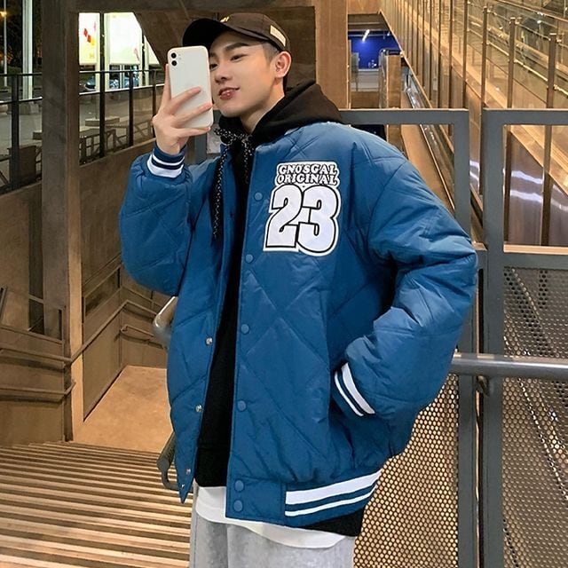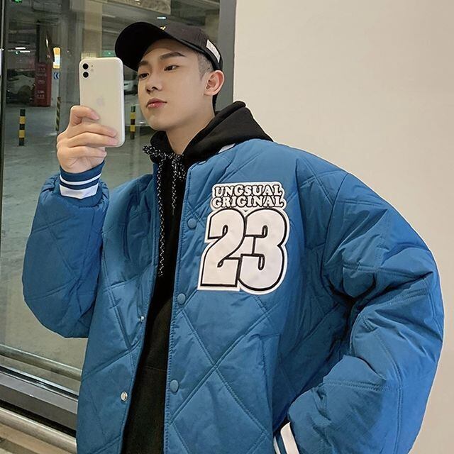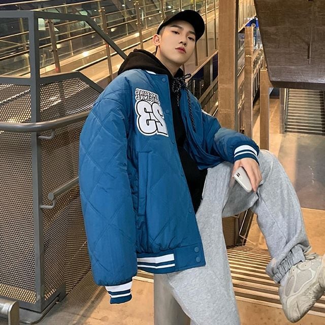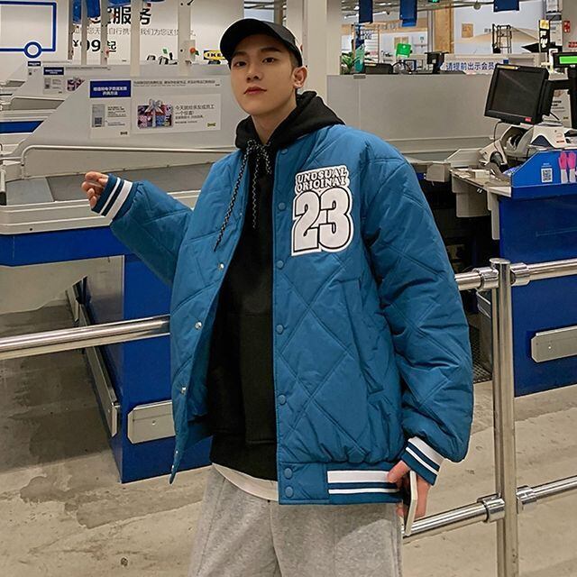 【予約販売】ブルゾン スタジャン アウター ブルー ブラック キルティング ストリート 冬 ジャケット ショート丈 メンズ カジュアル 男前 こなれ感 お洒落 韓国 トレンド 秋 冬 S/M/L/XL