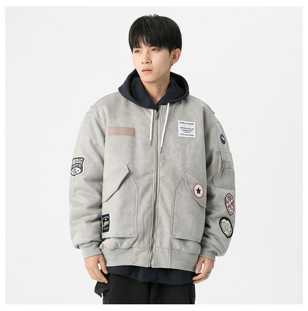 【予約販売】ブルゾン スタジャン アウター MA-1 ブラック グレー 黒 ワッペン ストリート 冬 ジャケット ショート丈 メンズ カジュアル 男前 こなれ感 お洒落 韓国 トレンド 秋 冬 S/M/L/XL/2XL