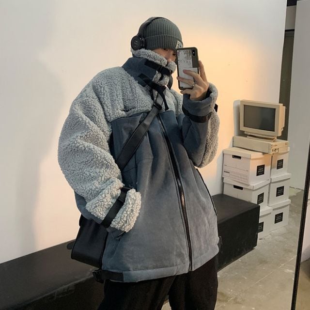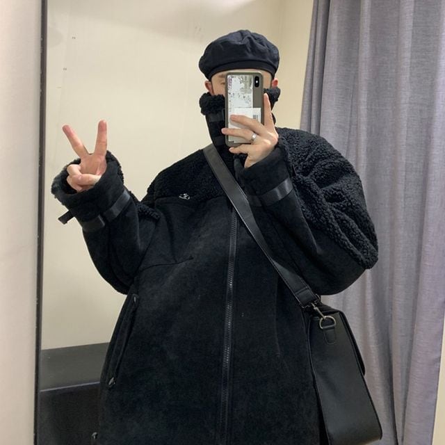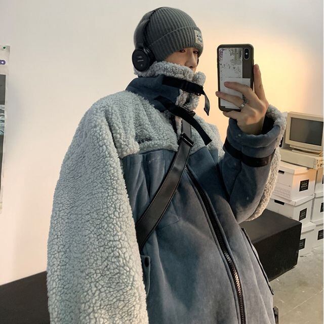 【予約販売】ボアブルゾン アウター もこもこ ベルト ブラック グレー ホワイト ムートン 冬 ジャケット ショート丈 メンズ カジュアル 男前 こなれ感 お洒落 韓国 トレンド 秋 冬 M/L/XL/2XL/3XL/4XL/5XL