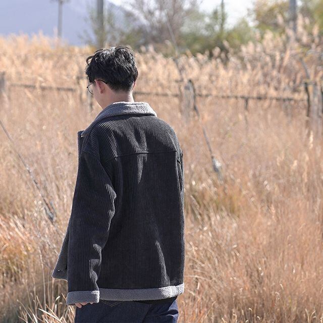 【予約販売】ブルゾン 防寒 メンズ アウター コーデュロイ ボア ジャケット ショート丈 ブラック こなれ感 お洒落 韓国 トレンド 秋 冬 M/L/XL/2XL