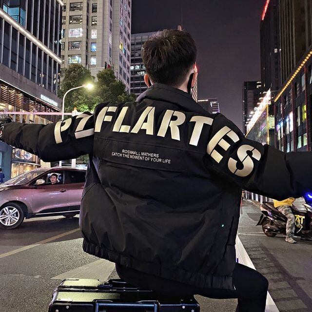 【予約販売】ブルゾン メンズ バックプリント アウター ブラック ショート丈 防寒 お洒落 こなれ感 ベーシック 秋冬 大きいサイズ M/L/XL/2XL/3XL