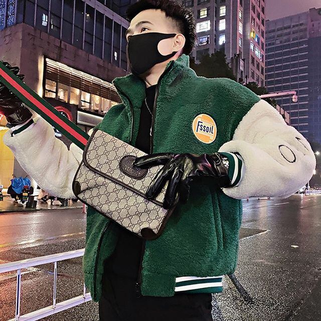 【予約販売】スタジャン ボア ブルゾン 防寒 メンズ アウター 刺繍 ジャケット ショート丈 オーバーサイズ ブラック グリーン こなれ感 お洒落 韓国 トレンド 秋 冬 M/L/XL/2XL/3XL