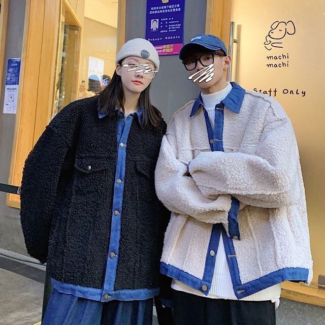 【予約販売】ボアジャケット デニム アウター 異素材MIX ショート丈 防寒 メンズ レディース ユニセックス ストリート ブラック ベージュ 防寒 お洒落 こなれ感 ベーシック 秋冬 大きいサイズ M/L/XL/2XL
