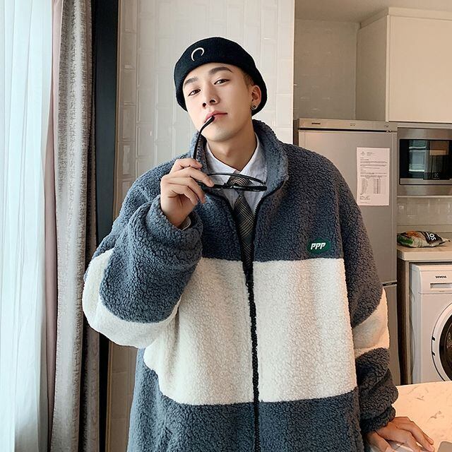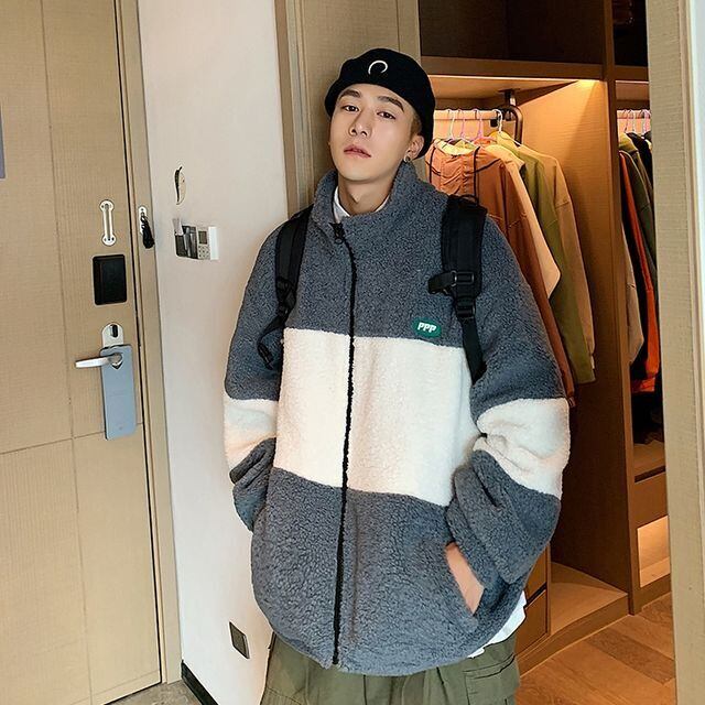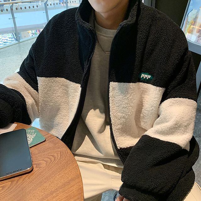 【予約販売】ボアブルゾン メンズ バイカラー モノトーン ショート丈 ビッグシルエット オーバーサイズ グレー ブラック コート ジャケット 防寒 お洒落 こなれ感 ベーシック 秋冬 大きいサイズ M/L/XL/2XL