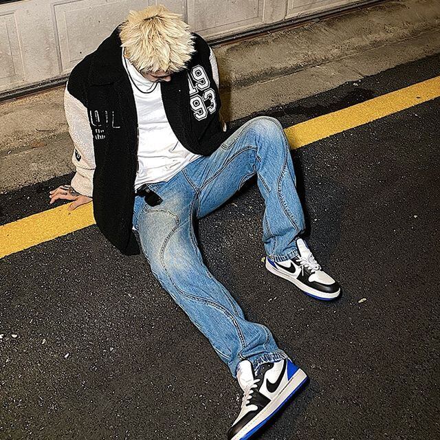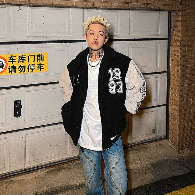 【予約販売】スタジャン ボア ブルゾン 防寒 メンズ アウター ワッペン ジャケット ショート丈 オーバーサイズ ブラック グリーン こなれ感 お洒落 韓国 トレンド 秋 冬 M/L/XL
