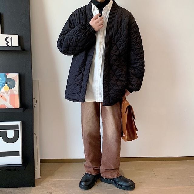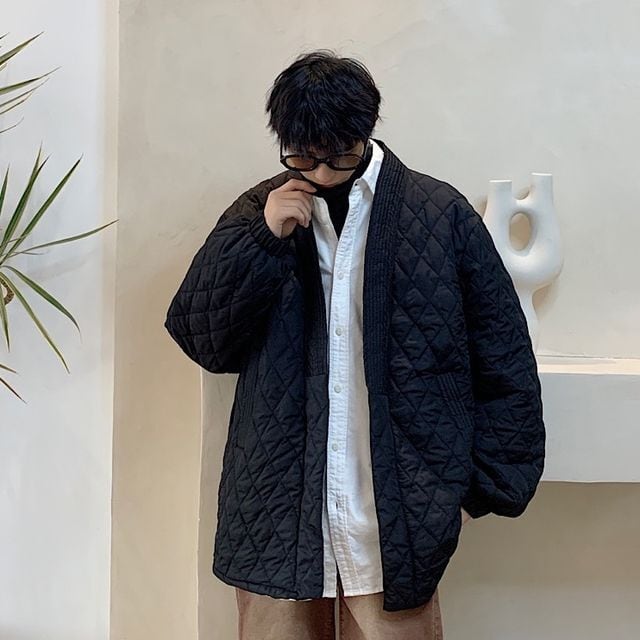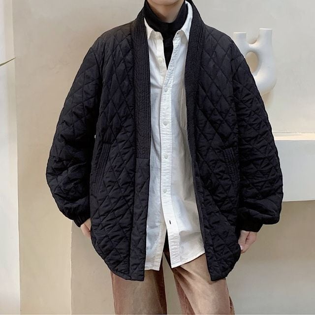 【予約販売】コート 和モダン 和風 モノトーン ブラック 羽織 キルティング アウター ショート丈 メンズ 防寒 お洒落 こなれ感 ベーシック 秋冬 大きいサイズ M/L/XL/2XL