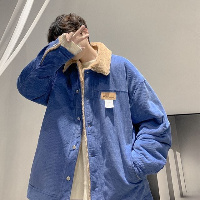 【予約販売】ボアブルゾン アウター コーデュロイ もこもこ グレー ブルー ベージュ 冬 ジャケット ショート丈 メンズ カジュアル 男前 こなれ感 お洒落 韓国 トレンド 秋 冬 M/L/XL/2XL