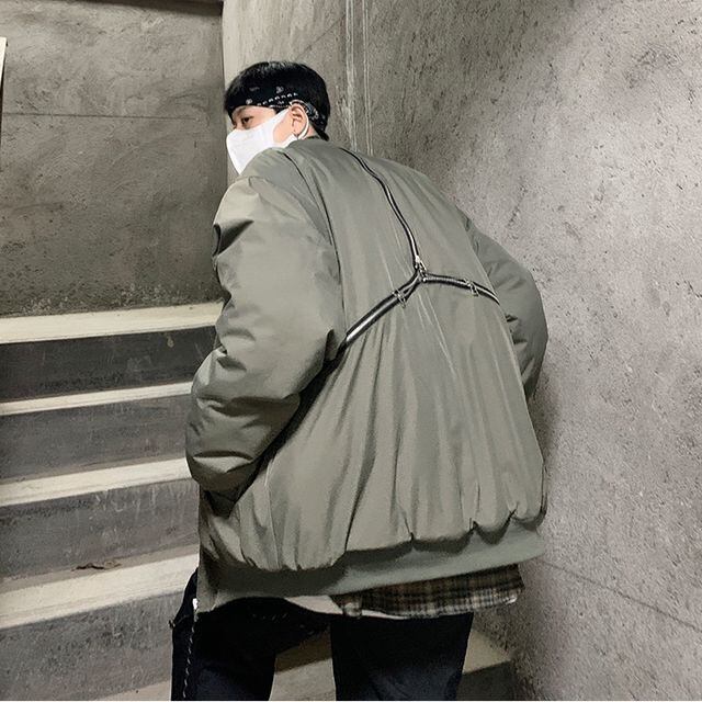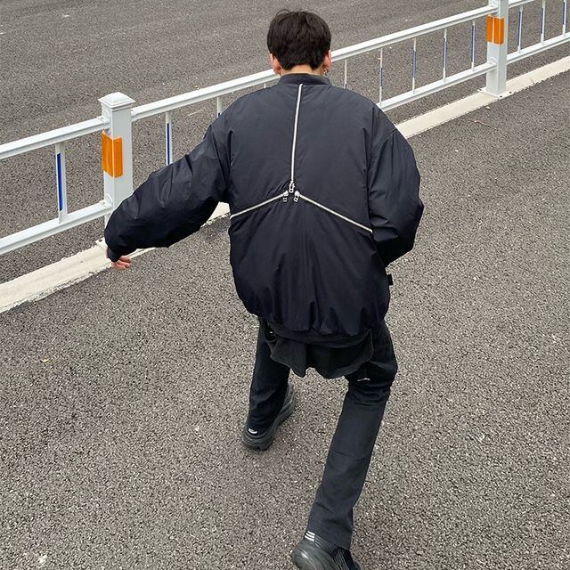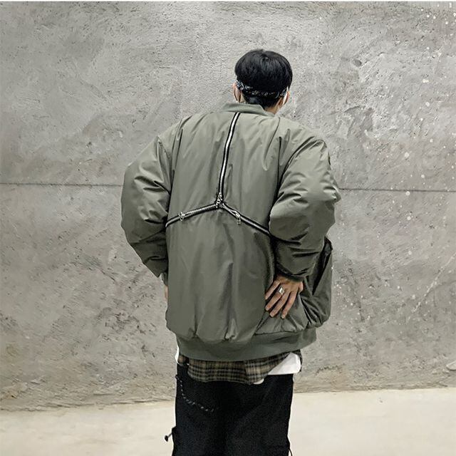 【予約販売】ブルゾン MA-1 アシンメトリー アウター アーミー ミリタリー ショート丈 防寒 メンズ シンプル 無地 ストリート ブラック カーキ 防寒 お洒落 こなれ感 ベーシック 秋冬 大きいサイズ M/L/XL/2XL
