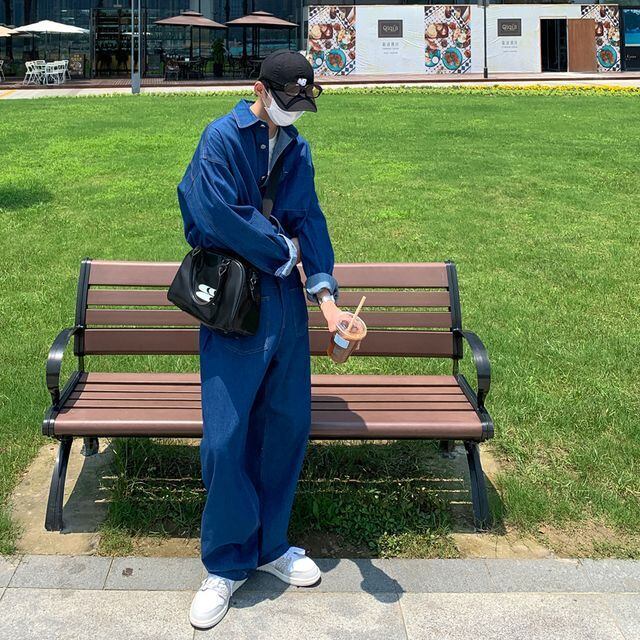 【予約販売】オールインワン つなぎ オーバーオール サロペット ジャンプスーツ ブラック ブルー ボトムス メンズ カジュアル こなれ感 お洒落 韓国 トレンド 秋 冬 S/M/L/XL