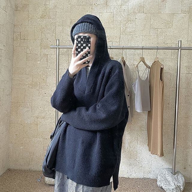 【予約販売】ビッグシルエットパーカー セーター ニット メンズ フーディー オーバーサイズ 無地 ブルー グレー ブラック トレンド お洒落 韓国 秋 大きいサイズ S/M/L/XL/2XL