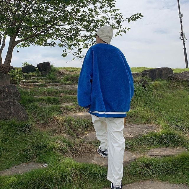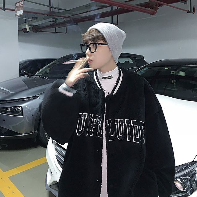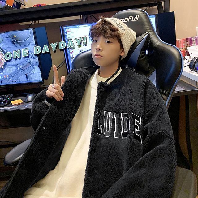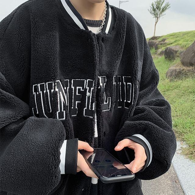 【予約販売】スタジャン ボア ブルゾン 防寒 メンズ アウター ジャケット ショート丈 オーバーサイズ ブラック ホワイト ブルー こなれ感 お洒落 韓国 トレンド 秋 冬 S/M/L/XL