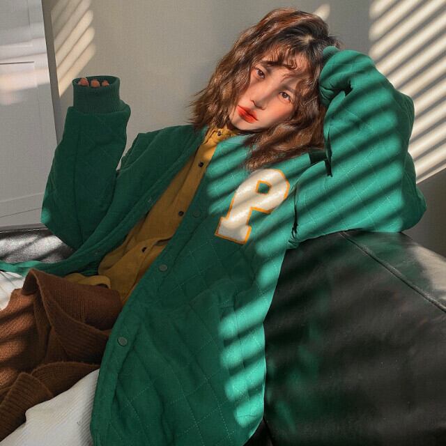 スタジャン レディース アウター 厚手 シンプル オーバーシルエット カジュアル ロゴ グリーン Mサイズ Lサイズ