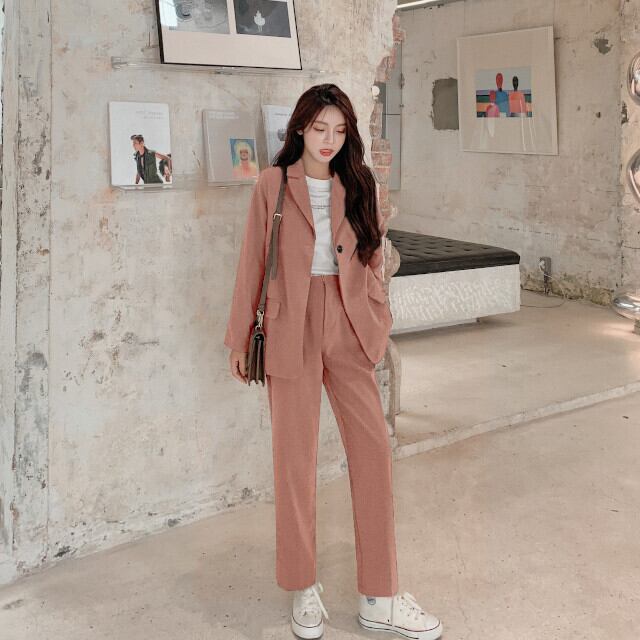 セットアップ ツーピース レディース ジャケット パンツ おしゃれ こなれ感 シンプル ベーシック グリーン/ブラウン/ピンク S/M/L/XL