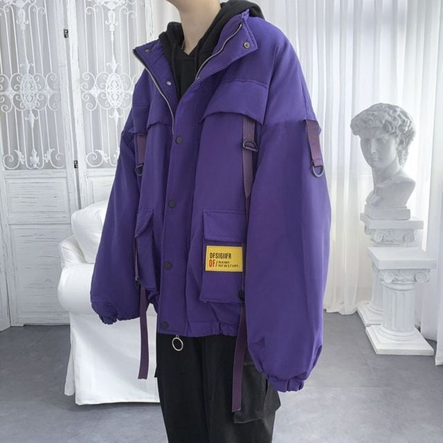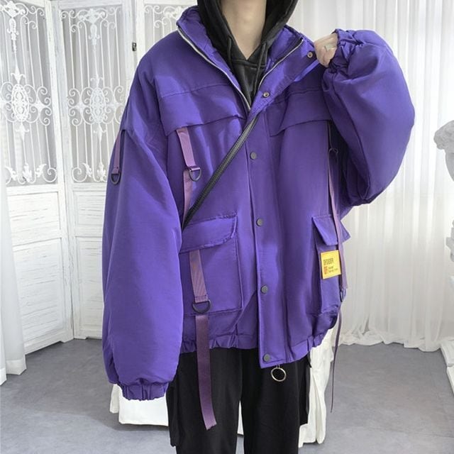 【予約販売】 ブルゾン 防寒 メンズ アウター ベルト ジャケット ショート丈 オーバーサイズ パープル レッド ブラック ストリート ミリタリー こなれ感 お洒落 韓国 トレンド 秋 冬 M/L/XL/2XL