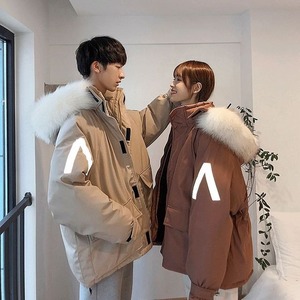 【予約販売】ブルゾン アウター ファーフード ショート丈 反射 防寒 メンズ レディース ユニセックス ストリート ブラック ベージュ ブルー ブラウン 防寒 お洒落 こなれ感 ベーシック 秋冬 大きいサイズ S/M/L/XL