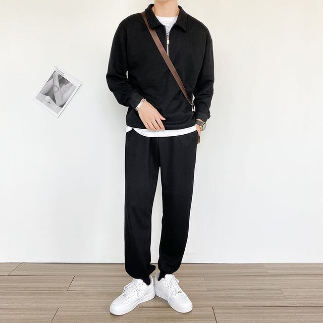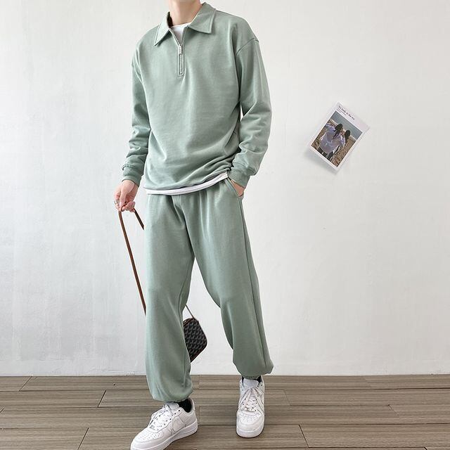 【予約販売】メンズ セットアップ ジップアップ スエット 上下セット カジュアル 男前 ブラック グレー グリーン 韓国 ストレート 韓国 トレンド M/L/XL/2XL