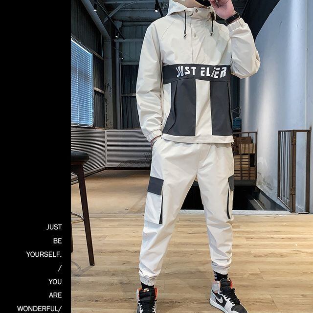 【予約販売】メンズ セットアップ 上下 ブラック オフホワイト フード付き ダンス 部屋着 長袖 防寒 ジム スポーツウエア カジュアル 秋冬 大きいサイズ M/L/XL/2XL/3XL