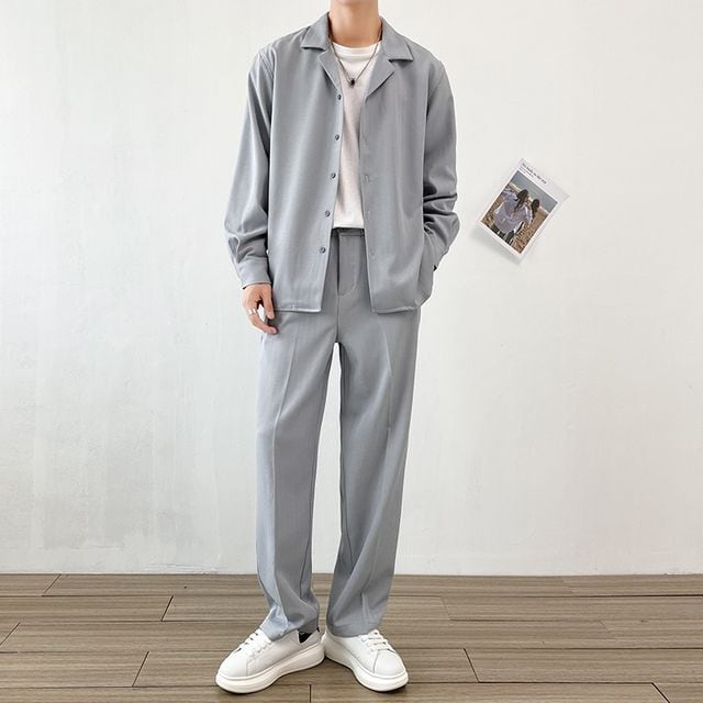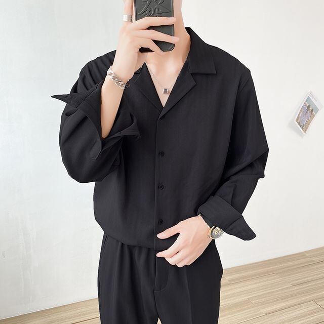 【予約販売】メンズ セットアップ 上下 長袖シャツ ブラック グレー 男前 韓国 パンツ セット パーティ 二次会 同窓会 結婚式 韓国 トレンド 大きいサイズ S/M/L/XL
