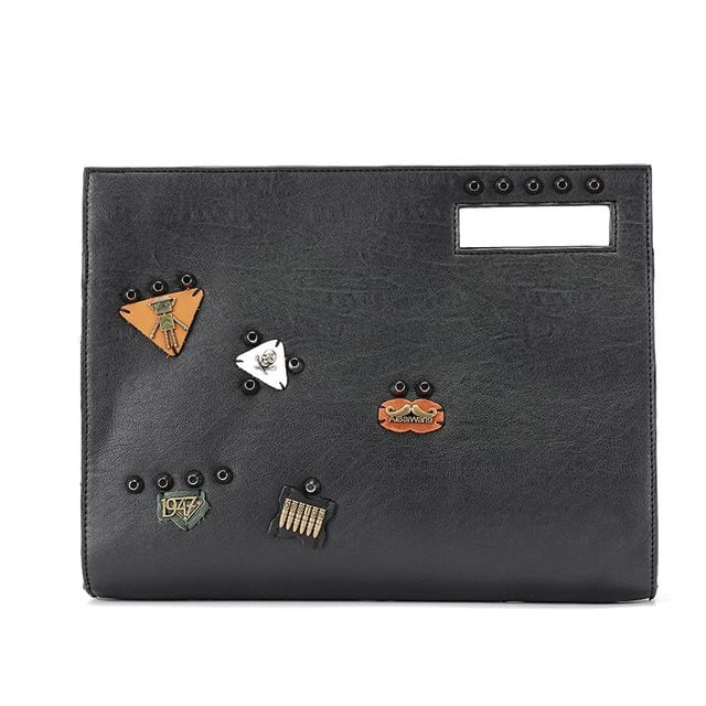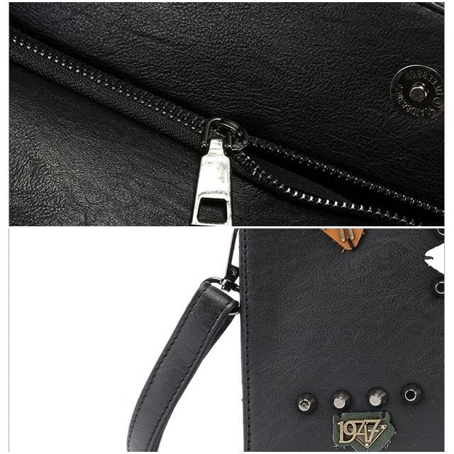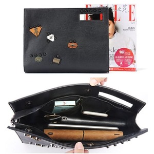 【予約販売】クラッチバッグ ハンドバッグ ショルダーバッグ メンズ ブラック 黒 型押し スタッズ スカル 髑髏 スクエア こなれ感 お洒落 韓国 トレンド