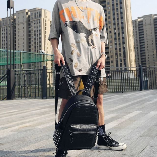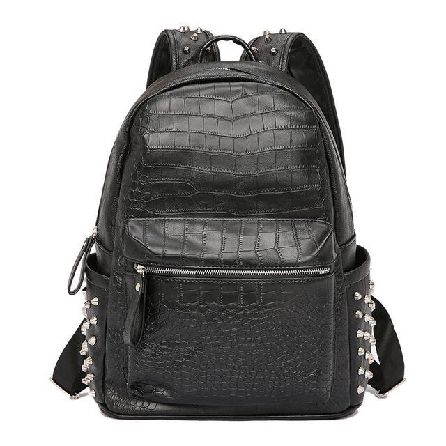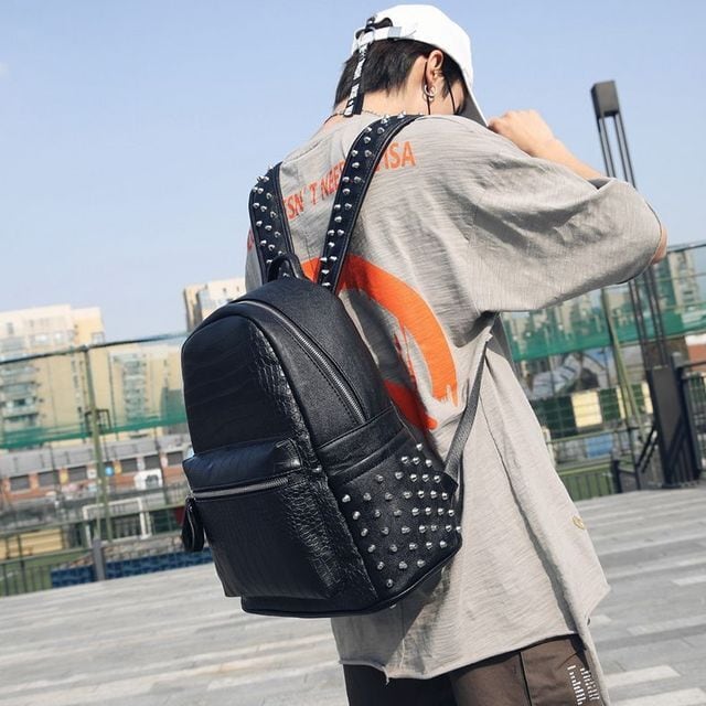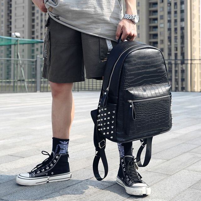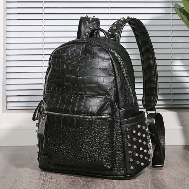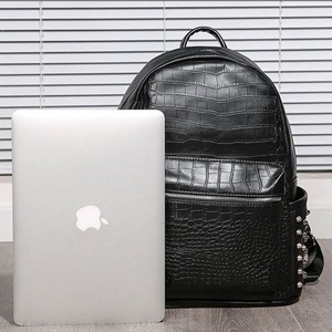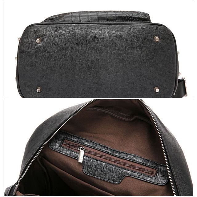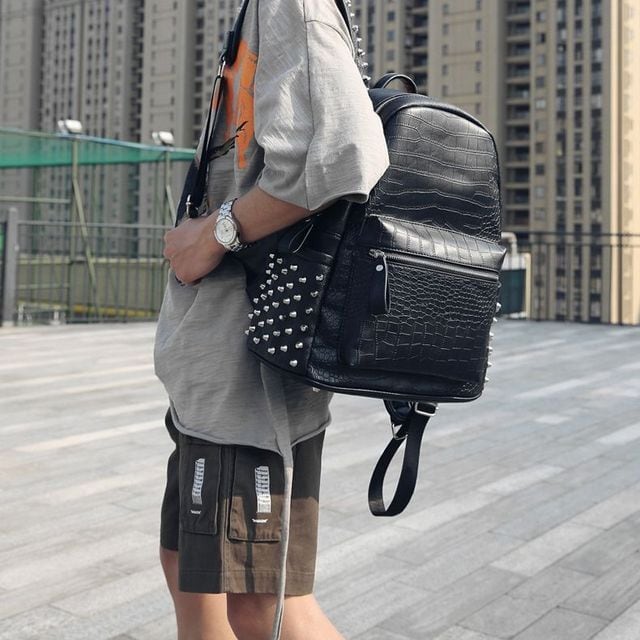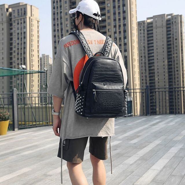 【予約販売】リュック メンズ スタッズ バッグパック クロコダイル 型押し ブラック 黒 通学 ストリート こなれ感 お洒落 韓国 トレンド