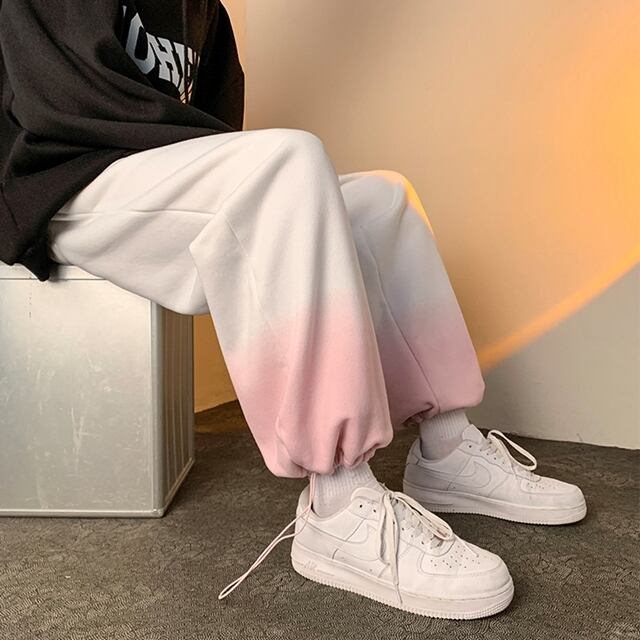【予約販売】スエットパンツ ボトムス 厚手 メンズ パンツ ストリート グラデーション ルーズ ジョガーパンツ 防寒 グレー ピンク カジュアル こなれ感 お洒落 韓国 トレンド 秋 冬 M/L/XL/2XL