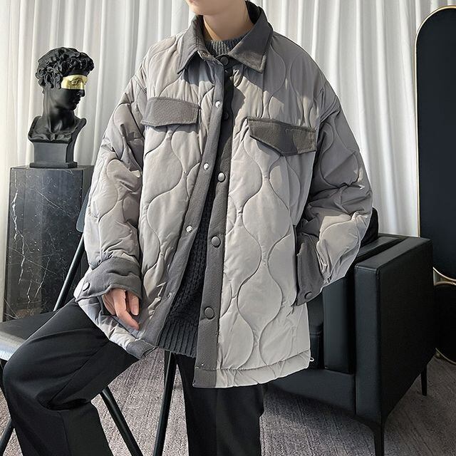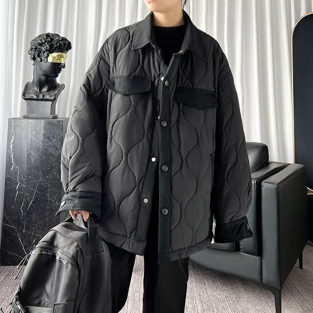 【予約販売】ジャケット キルティング アウター ショート丈 ブルゾン ブラック グレー ホワイト 防寒 メンズ シンプル 無地 ストリート お洒落 こなれ感 ベーシック 秋冬 大きいサイズ M/L/XL/2XL/3XL