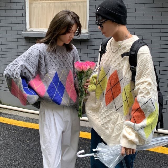 【予約販売】ニット ユニセックス セーター ペア お揃い カップル ケーブルニット デザイン ホワイト グレー オーバーサイズ メンズ レディース シンプル こなれ感 ストリート お洒落 韓国 トレンド 秋冬 S/M/L/XL/2XL