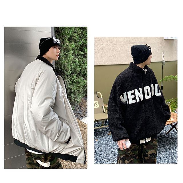 【予約販売】ボアブルゾン リバーシブル 2Way アウター 冬 胸ロゴ ジャケット ショート丈 メンズ シンプル ホワイト ブラック ベージュ 男前 こなれ感 お洒落 韓国 トレンド 秋 冬 S/M/L/XL/2XL