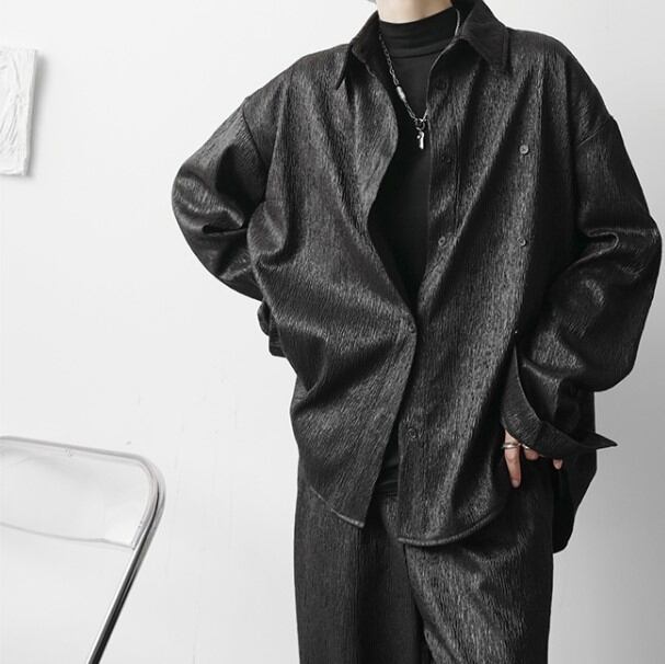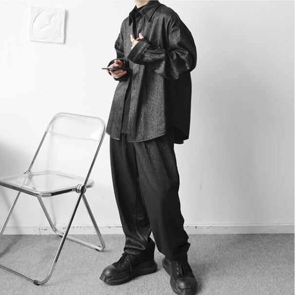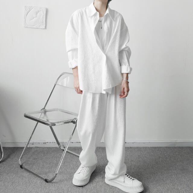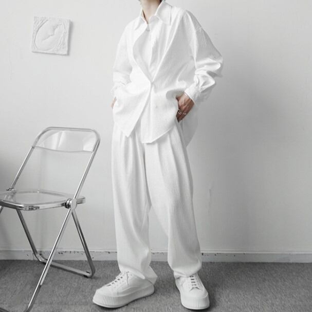 【予約販売】メンズ セットアップ 上下 長袖シャツ ブラック ホワイト モード 男前 韓国 パンツ セット リラックス カジュアル お洒落 韓国 トレンド 大きいサイズ M/L/XL/2XL