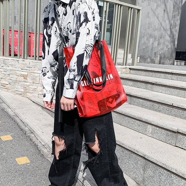 ショルダーバッグ 大容量 クリア スケルトン おしゃれ かっこいい ストリート カジュアル 旅行 レジャー プール ジム カラバリ豊富 クリア/レッド/パープル/ブルー/ブラック