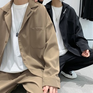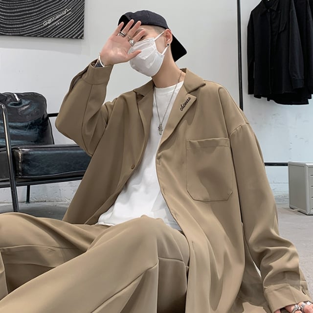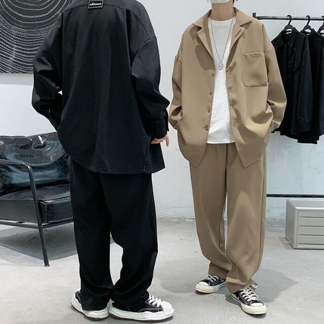 【予約販売】メンズ セットアップ 上下 カジュアル スーツ 襟刺繍 ブラック ベージュ モード 男前 韓国 パンツ セット パーティ カジュアル 二次会 同窓会 結婚式 韓国 トレンド 大きいサイズ M/L/XL/2XL