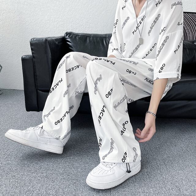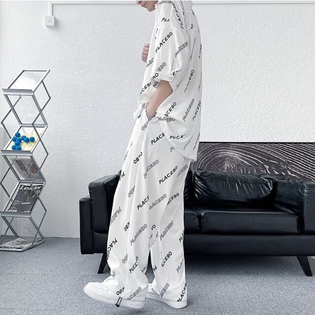 【予約販売】メンズ セットアップ 上下 半袖 総ロゴ Vネック ブラック ホワイト 男前 スエット 韓国 パンツ セット ウエストゴム カジュアル 部屋着 リラックス ルームウエア 韓国 トレンド 大きいサイズ M/L/XL/2XL/3XL/4XL/5XL
