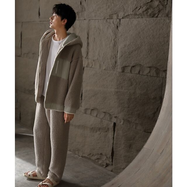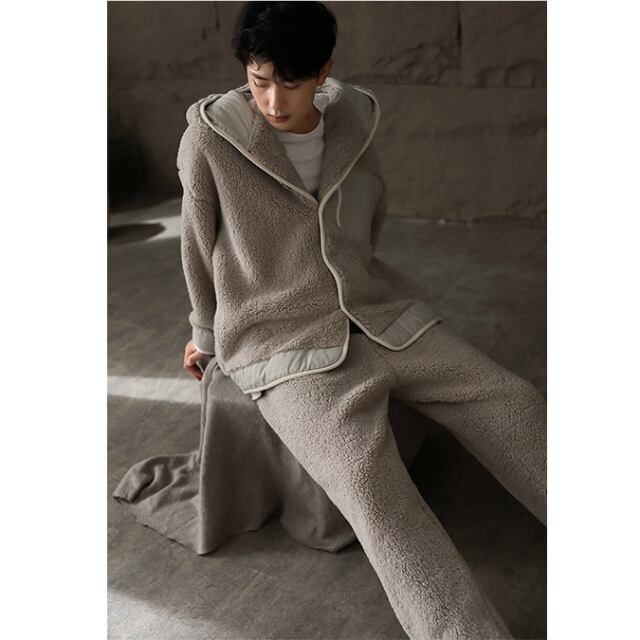 【予約販売】メンズ セットアップ 上下 長袖 フーディー もこもこ パーカー ベージュ ルーズ 男前 スエット 韓国 パンツ セット ジム カジュアル 部屋着 リラックス ルームウエア パジャマ 韓国 トレンド 大きいサイズ L/XL/2XL