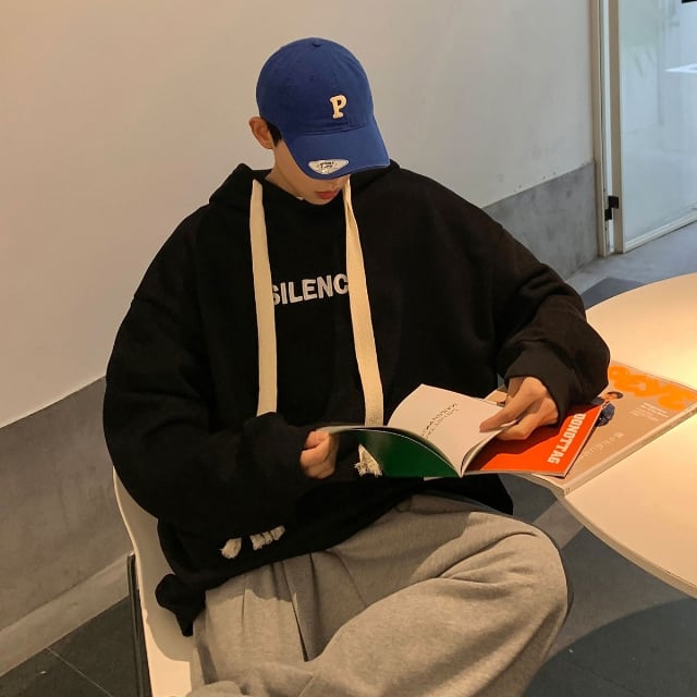 【予約販売】パーカー フーディー 太紐 シンプル 長袖 メンズ ユニセックス レディース ブラック レッド グレー 無地 カジュアル こなれ感 お洒落 韓国 トレンド 冬秋冬春 M/L/XL