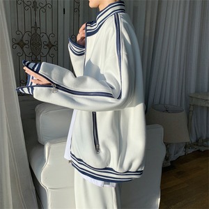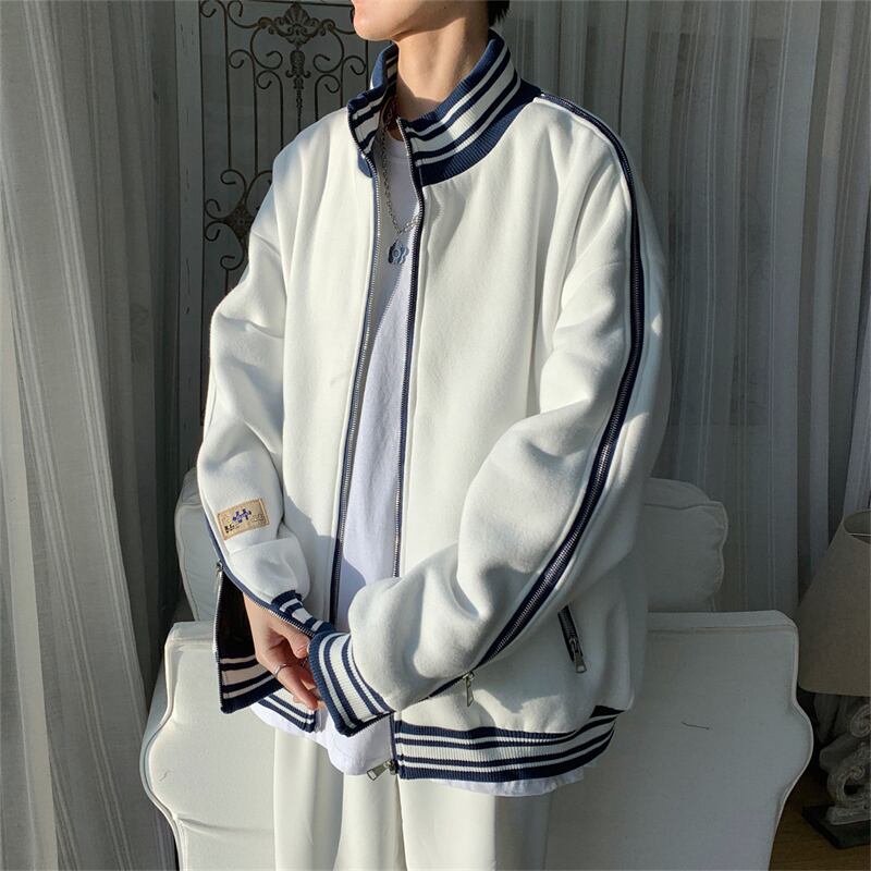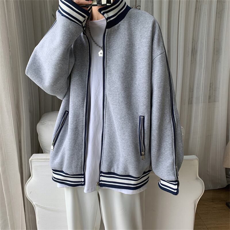 【予約販売】 ブルゾン トレーナー スエット ジップアップ アウター シンプル 長袖 サイドジップ メンズ グレー ホワイト 無地 カジュアル こなれ感 お洒落 韓国 トレンド 冬秋冬春 M/L/XL