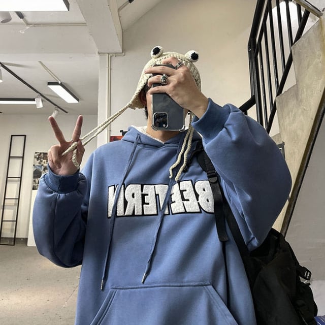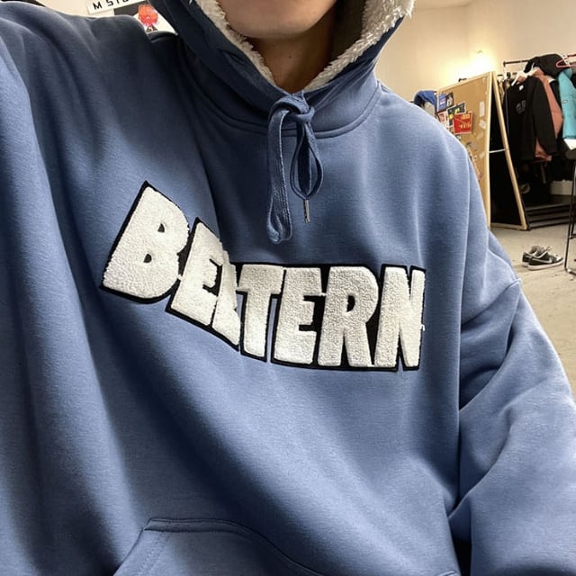 【予約販売】パーカー トレーナー もこもこ スエット シンプル 胸ロゴ 裏起毛 長袖 メンズ ユニセックス レディース ブルー グレー 無地 カジュアル こなれ感 お洒落 韓国 トレンド 冬秋冬春 M/L/XL