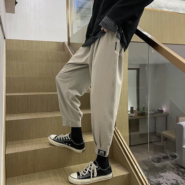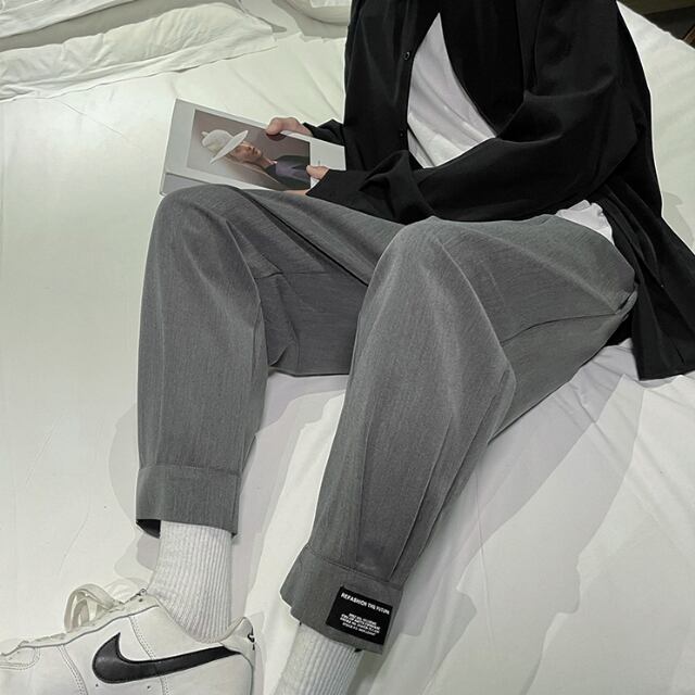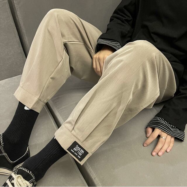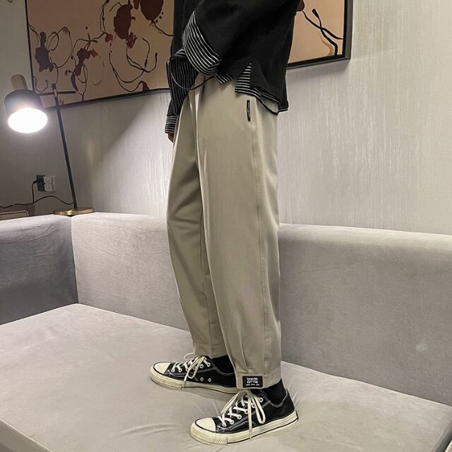 【予約販売】ストレートパンツ メンズ ボトムス シンプル カジュアル 裾タグ ブラック ベージュ グレー スタイリッシュ こなれ感 韓国 トレンド 春 夏 秋 冬 M/L/XL/2XL/3XL