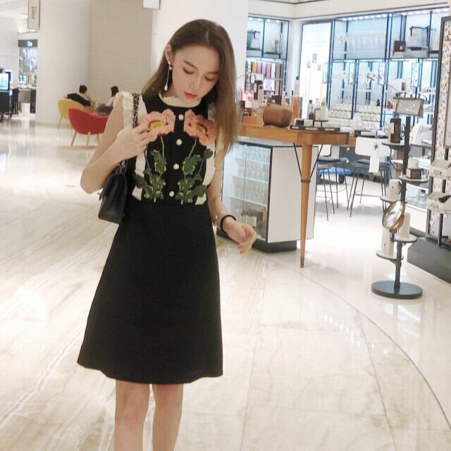 ワンピース ドレス レディース オケージョンワンピ 刺繍 フラワー 花柄 かわいい おしゃれ ノースリーブ 膝上丈 ミニワンピ ブラック S/M/L
