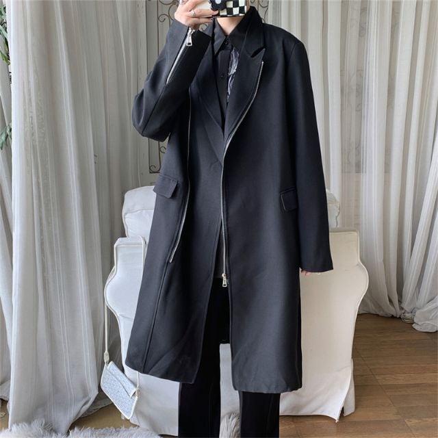 【予約販売】コート メンズ シンプル ジップデザイン ミドル丈 モノトーン ラック ホワイト 無地 ベーシック 男前 シック 韓国 オーバーサイズ 綺麗め 春 冬 防寒 ビジネス 通勤 防寒 お洒落 こなれ感 秋冬 大きいサイズ M/L/XL