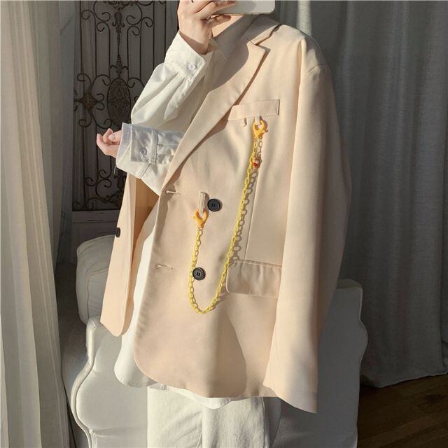【予約販売】ジャケット メンズ ブラック クリーム チェーンドレスアップ 個性的 こなれ感 お洒落 パーティー 結婚式 二次会 パーティー エレガント カジュアル 韓国 トレンド 春 S/M/L/XL/2XL/3XL