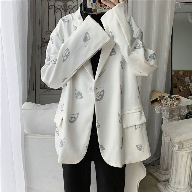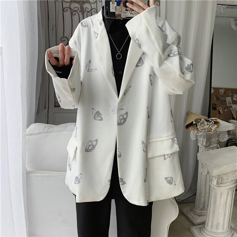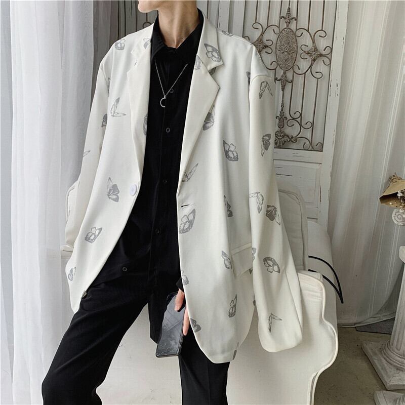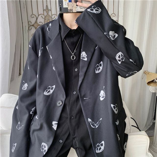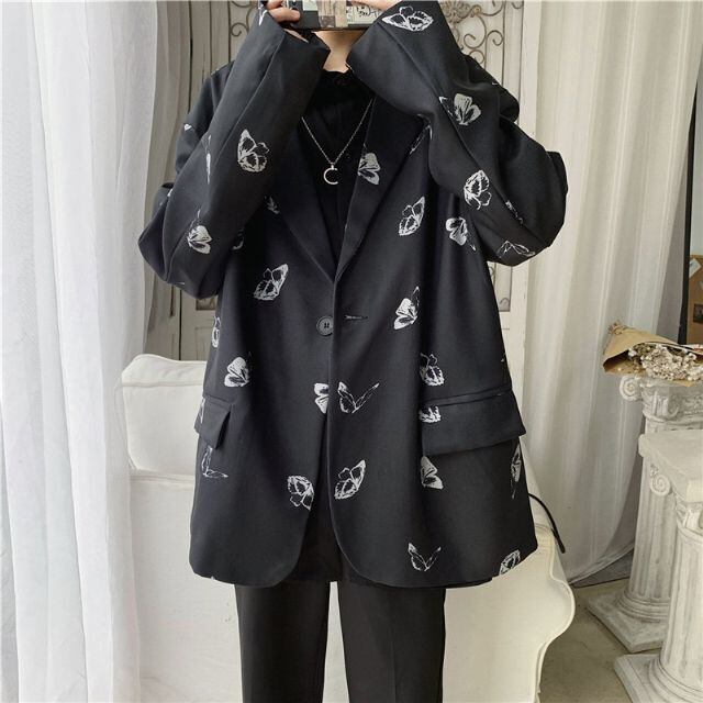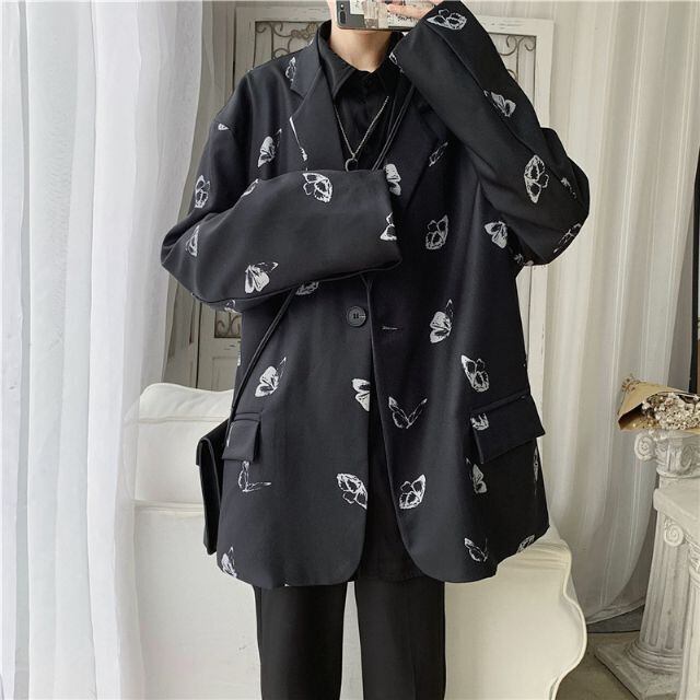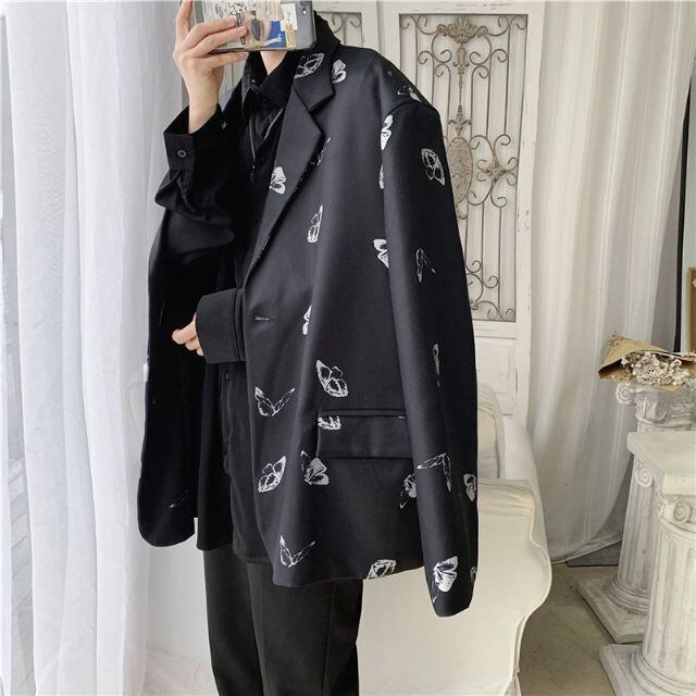 【予約販売】ジャケット メンズ 蝶柄 バタフライ ブラック ホワイト 個性的 こなれ感 お洒落 パーティー 結婚式 二次会 パーティー エレガント カジュアル 韓国 トレンド 春 S/M/L/XL/2XL/3XL/4XL/5XL