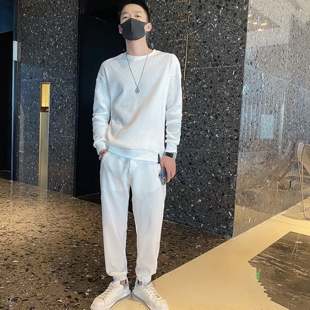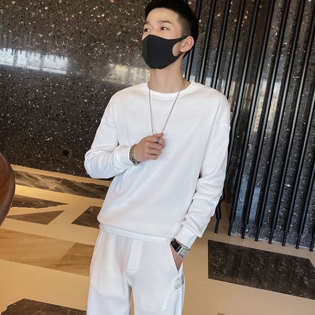 【予約販売】メンズ セットアップ リラックス スエット スリム 無地 上下 長袖 ブラック ホワイト ベージュ 男前 韓国 パンツ セット ルームウエア 韓国 トレンド 大きいサイズ M/L/XL/2XL/3XL