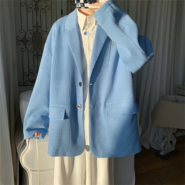 【予約販売】ジャケット メンズ カラー 無地 シングル ホワイト ブルー シンプル こなれ感 お洒落 パーティー 結婚式 二次会 パーティー エレガント カジュアル 韓国 トレンド 春 M/L/XL/2XL