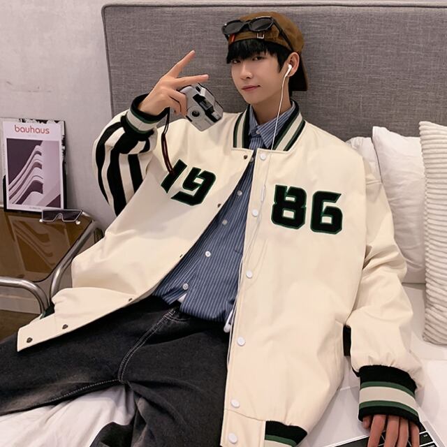 【予約販売】ブルゾン スタジャン アウター ショート丈 防寒 メンズ シンプル B系 ダンス ストリート ブラック ホワイト 防寒 お洒落 こなれ感 ベーシック 秋冬 大きいサイズ M/L/XL/2XL/3XL