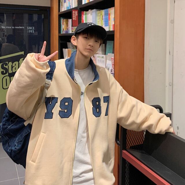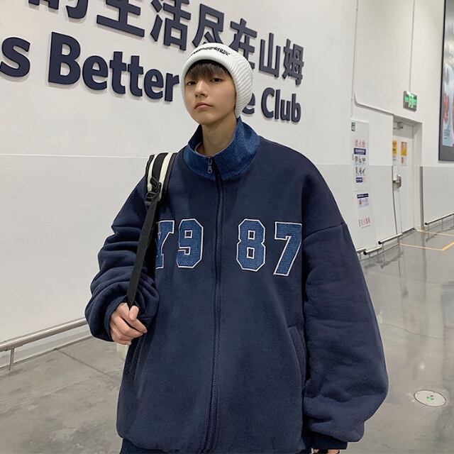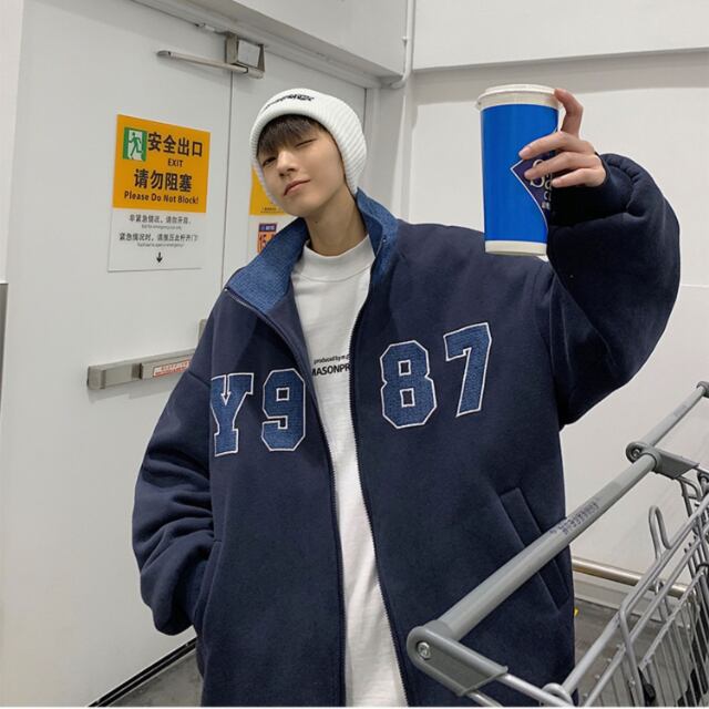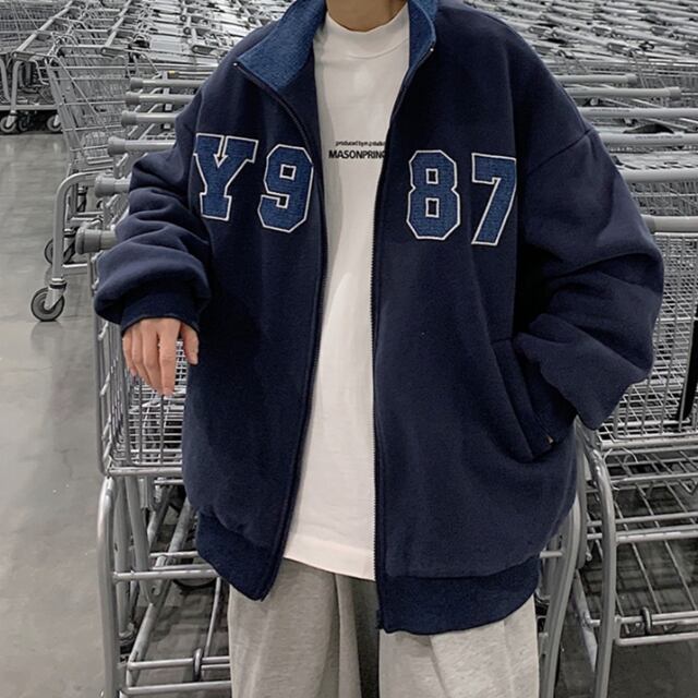 【予約販売】ブルゾン スタジャン アウター ショート丈 バイカラー 防寒 メンズ シンプル B系 ダンス ストリート ネイビー オフホワイト グレー 防寒 お洒落 こなれ感 ベーシック 秋冬 大きいサイズ M/L/XL/2XL