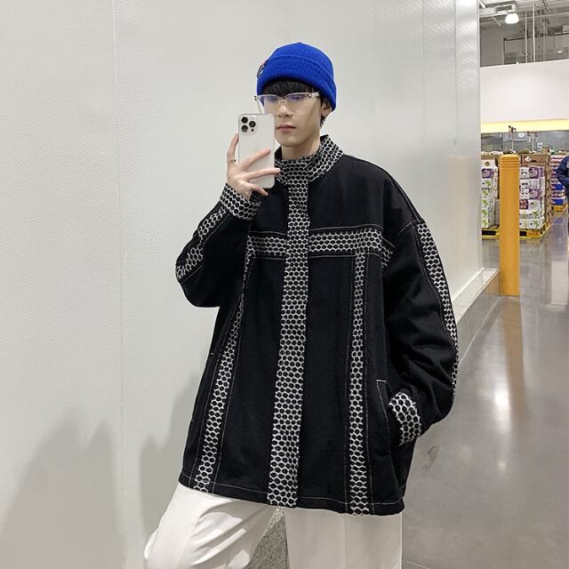 【予約販売】ブルゾン アウター バイカラー 黒 ブラック ジャケット ハイネック スタンドカラーメンズ お洒落 こなれ感 カジュアル ベーシック 秋 春 大きいサイズ S/M/L/XL/2XL